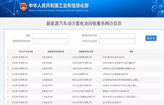 2018年2月工信部、科技部、環(huán)保部、交通運(yùn)輸部、商務(wù)部、質(zhì)檢總局、能源局等七部委聯(lián)合發(fā)布《新能源汽車動(dòng)力蓄電池回收利用管理暫行辦法》(以下簡(jiǎn)稱《辦法》),該《辦法》已從今年8月1日開(kāi)始實(shí)施。按照《新能源汽車動(dòng)力蓄電池回收利用管理暫行辦法》《新能源汽車動(dòng)力蓄電池回收利用溯源管理暫行規(guī)定》,工業(yè)和信息化部將每季度更新一次新能源汽車動(dòng)力蓄電池回收服務(wù)網(wǎng)點(diǎn)的信息情況。而此次回收服務(wù)網(wǎng)點(diǎn)信息公布也標(biāo)志著中國(guó)新能源汽車動(dòng)力電池回收利用真正進(jìn)入了執(zhí)行實(shí)施階段。